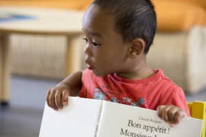 Nathalie Peine, lectrice-formatrice d'A.C.C.E.S., propose deux heures de lectures aux enfants sous le regard de leurs parents et accompagnateurs. Ces animations sont mises en place par la bibliothèque Nelson Mandela.