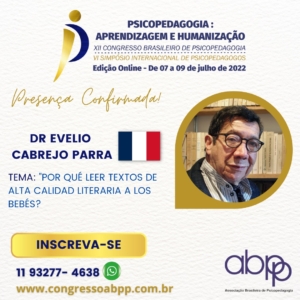 Le 8 juillet 2022, Evelio Cabrejo participe au 12è Congrès de psychopédagogie, 4ème symposium international des psychopédagogie organisé en visioconférence. Il intervient de 9h35 à 10h35 (heure brésilienne) sur le thème : "Pourquoi lire des textes de grande qualité littéraire aux tout-petits ?"